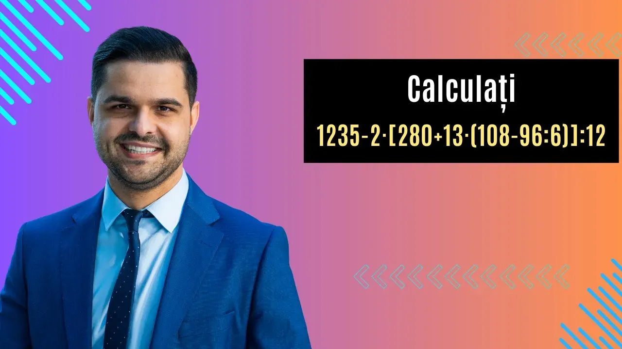Calculați: 1235-2·[280+13·(108-96:6)]:12.